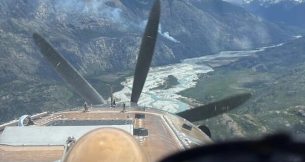 Brigadistas provinciales y personal de Parques trabajan de manera coordinada en el lugar, apoyados por un avión hidrante con base en El Bolsón.