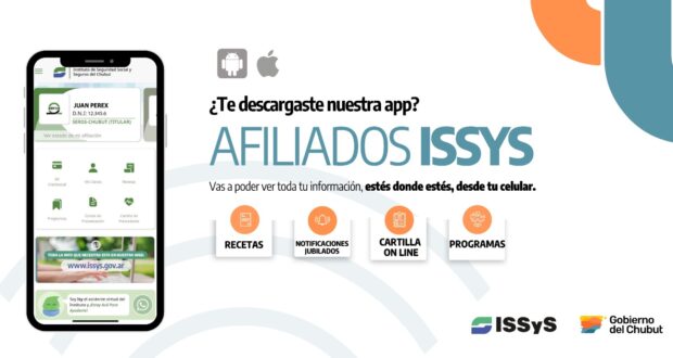 El Instituto de Seguridad Social y Seguros, a través de SEROS Chubut, recuerda la disponibilidad de la aplicación móvil Afiliados ISSyS, una herramienta diseñada para simplificar gestiones, brindar mayor comodidad y facilitar el acceso a información clave desde cualquier lugar de la provincia.